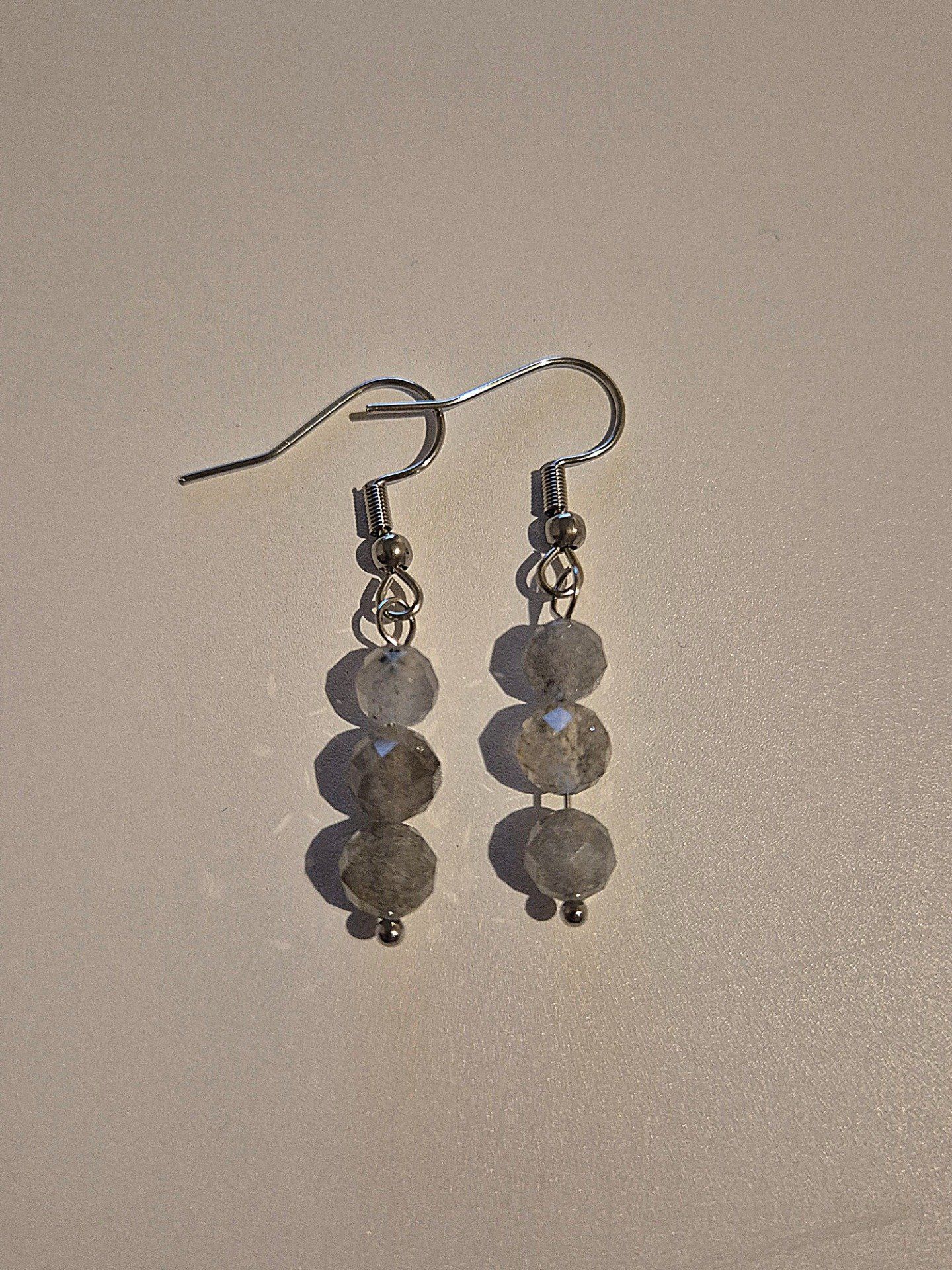 Boucles pendantes de perles faceté de Labradorite en 6mm. Crochet acier inoxydable