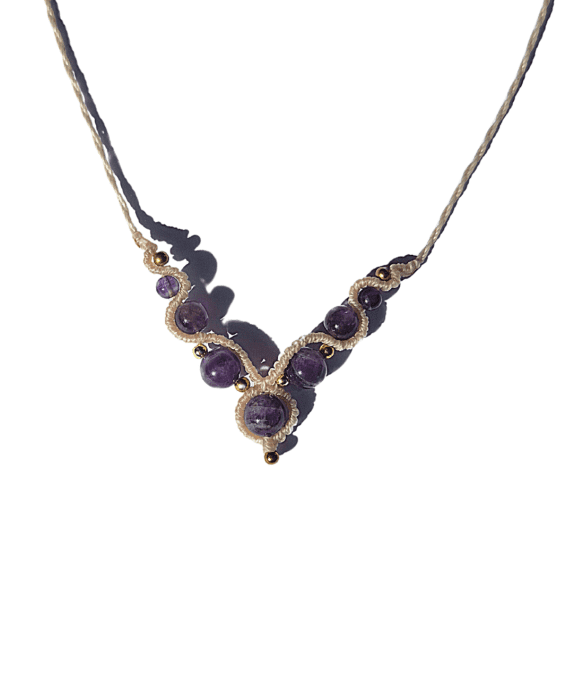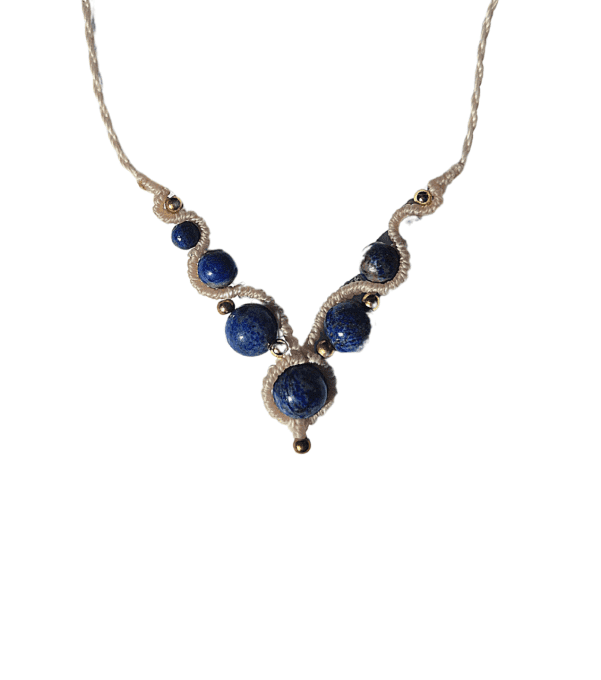 Dans le souffle d’une communauté vibrante, Solyluna macramé, j’ai tissé ce collier comme on tisse un poème. Inspirée par ses modèles, j’ai décliné ce bijou à ma façon, laissant mes mains danser sur les fils et épouser les perles.